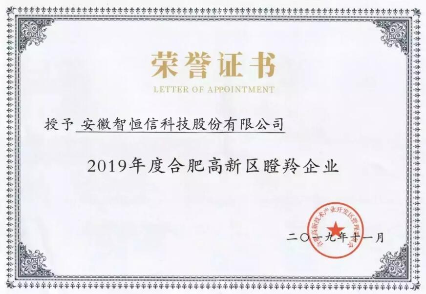 11月20日,合肥高新区高成长企业发布会在管委会一楼报告厅举行,会上发布了《合肥高新区2019年度高成长企业榜单及发展报告》,安徽j9国际站官网入口获颁2019年度合肥高新区瞪羚企业。